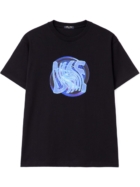 O destaque visual fica por conta da arte “Vortex” aplicada em screen print (serigrafia) de alta definição. A gola careca canelada reforça a estrutura da camiseta, mantendo o visual alinhado e sofisticado.