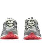 O diferencial do modelo 1906A está na sua construção visualmente complexa. O cabedal em mesh respirável é sobreposto por camadas sintéticas e detalhes em couro, criando uma aparência texturizada e robusta. O sistema de amarração assimétrico e as costuras aparentes reforçam a estética “work in progress” que é tendência absoluta na moda urbana atual.